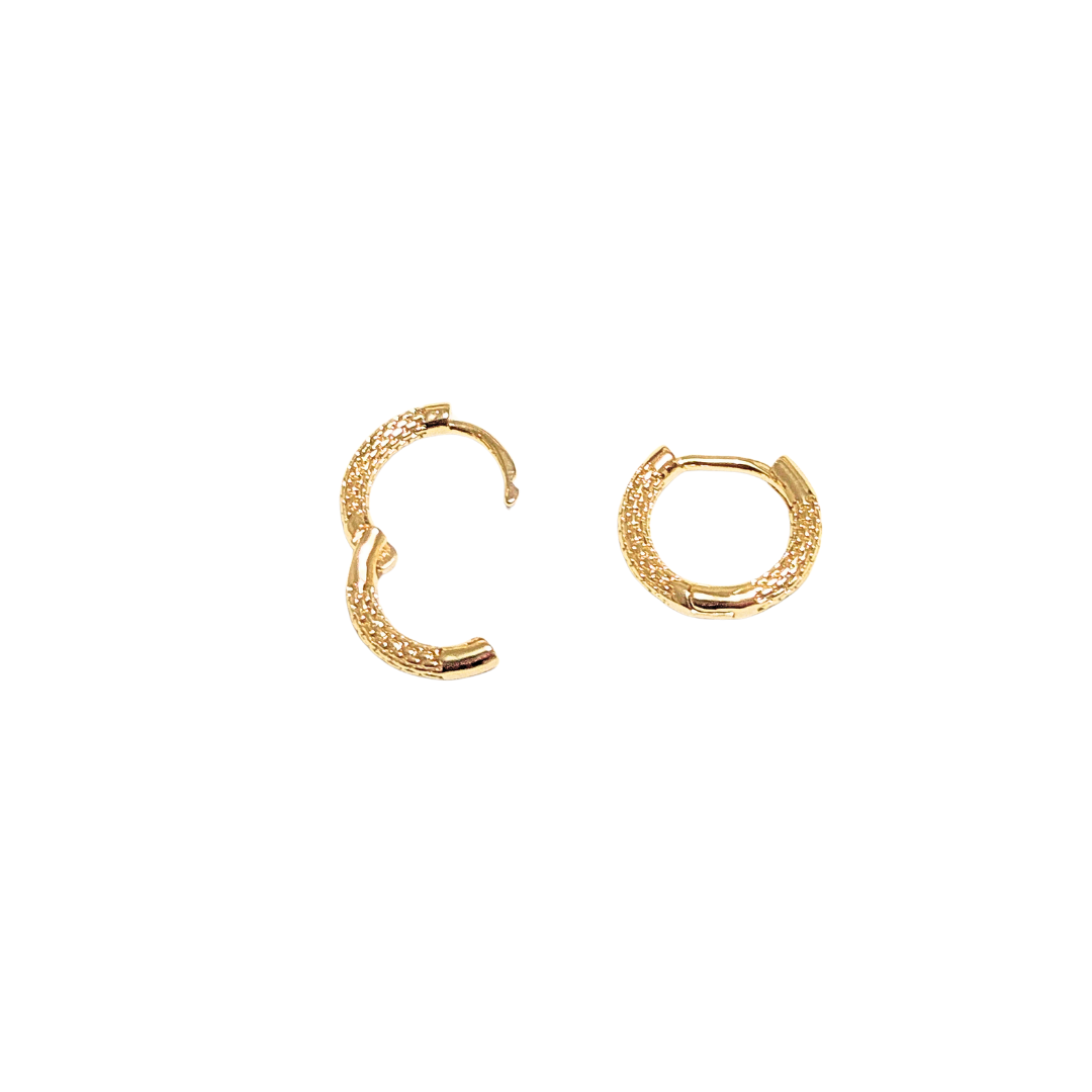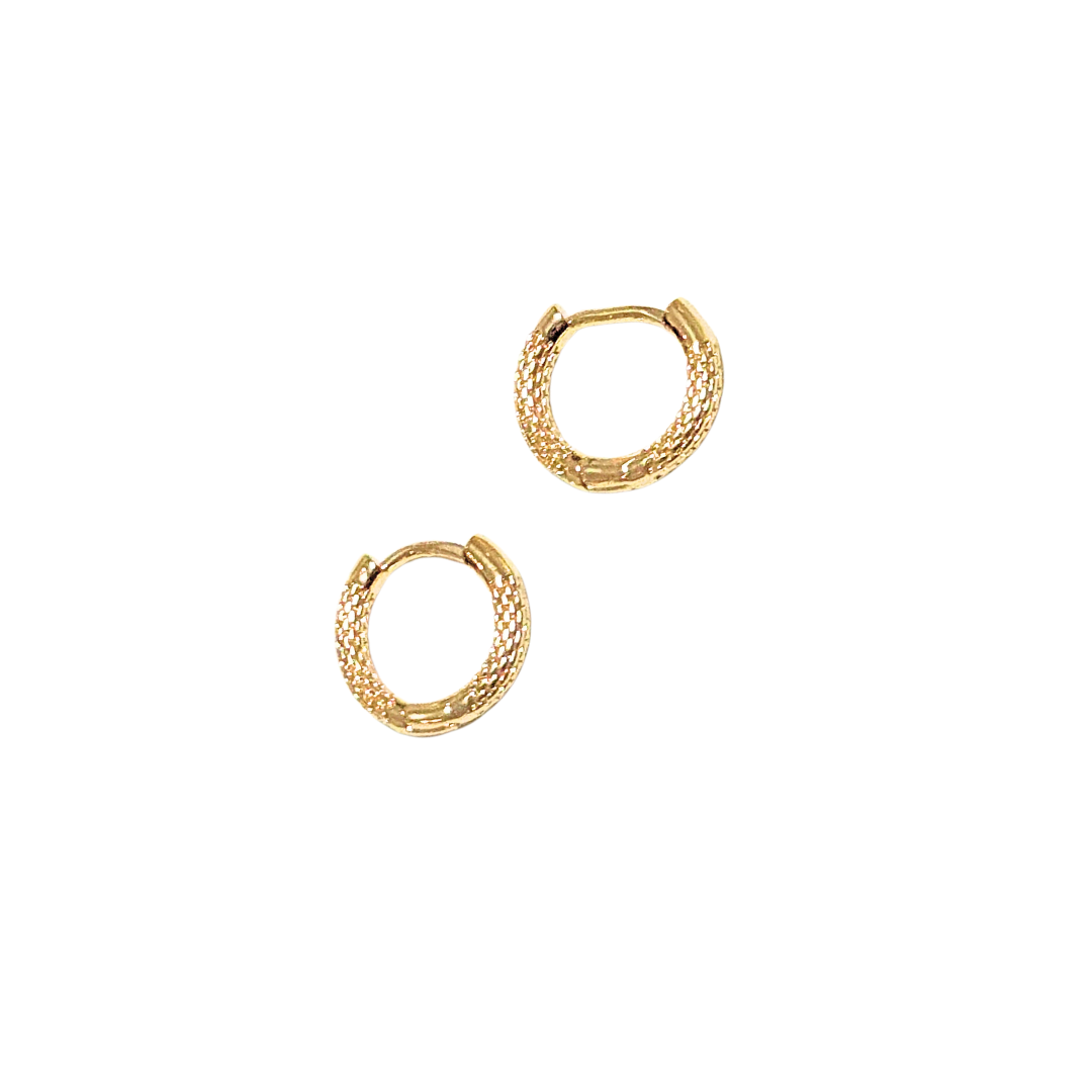 Aretes huggies delgaditos típo arracadas con diseño cuadriculado.