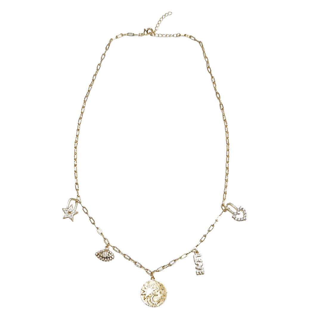 Collar corto de eslabones ovalados y dijes chicos con motivos varios