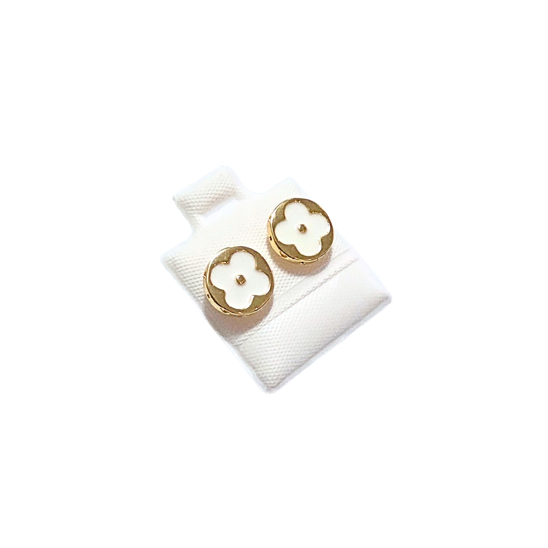 Broqueles pegaditos de forma circular plana, con centro en forma de flor esmaltada