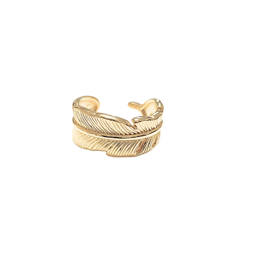 Anillo ancho, ajustable, con forma de hoja alargada