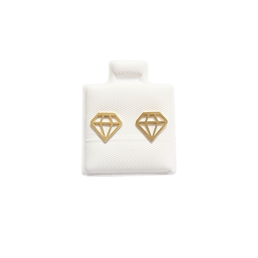ARETES PEGADITOS PLANOS CON FORMA DE DIAMANTES.