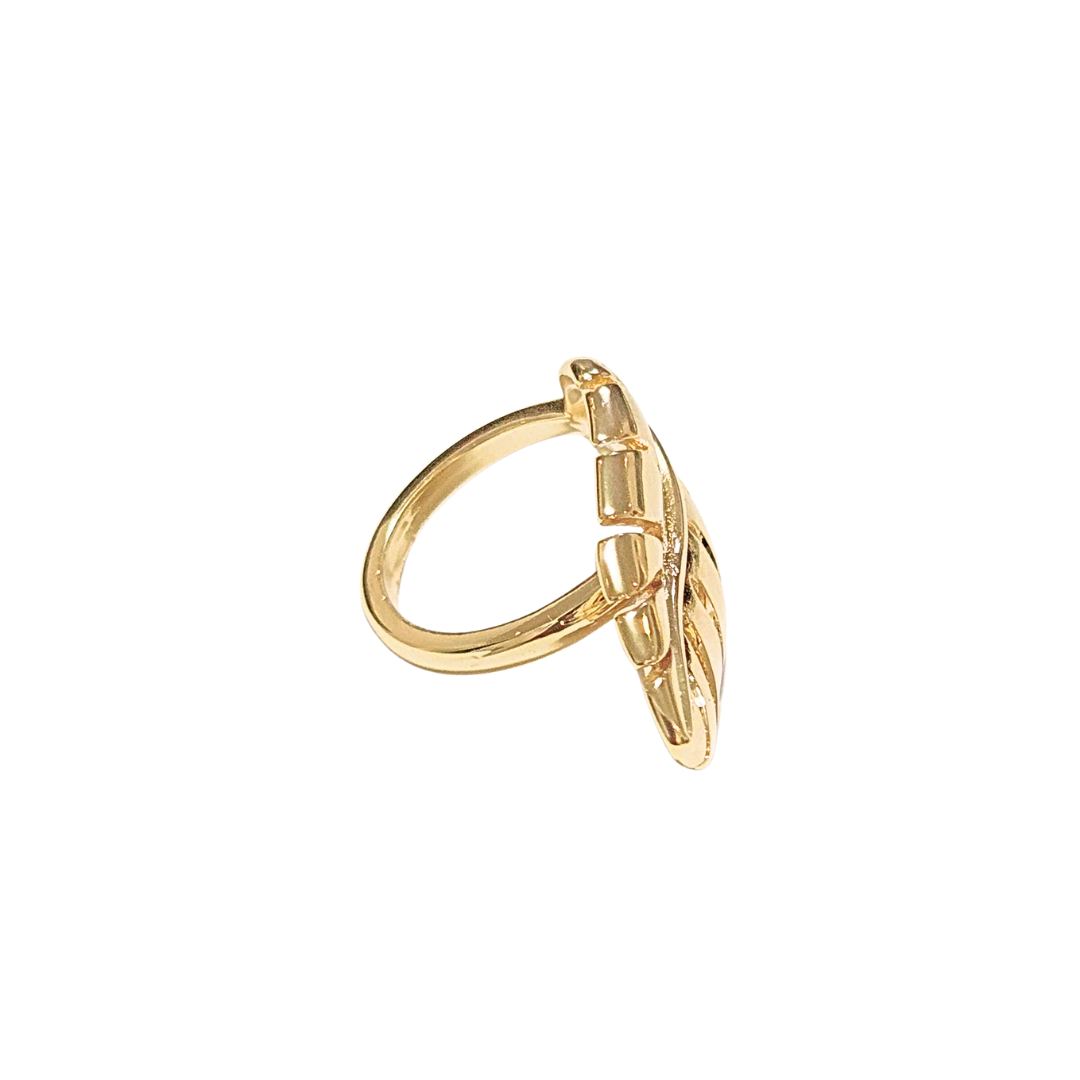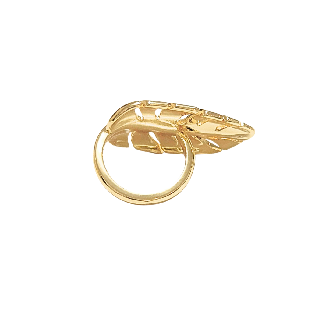 Anillo ajustable, chunky, con forma de hoja alargaday chunky.