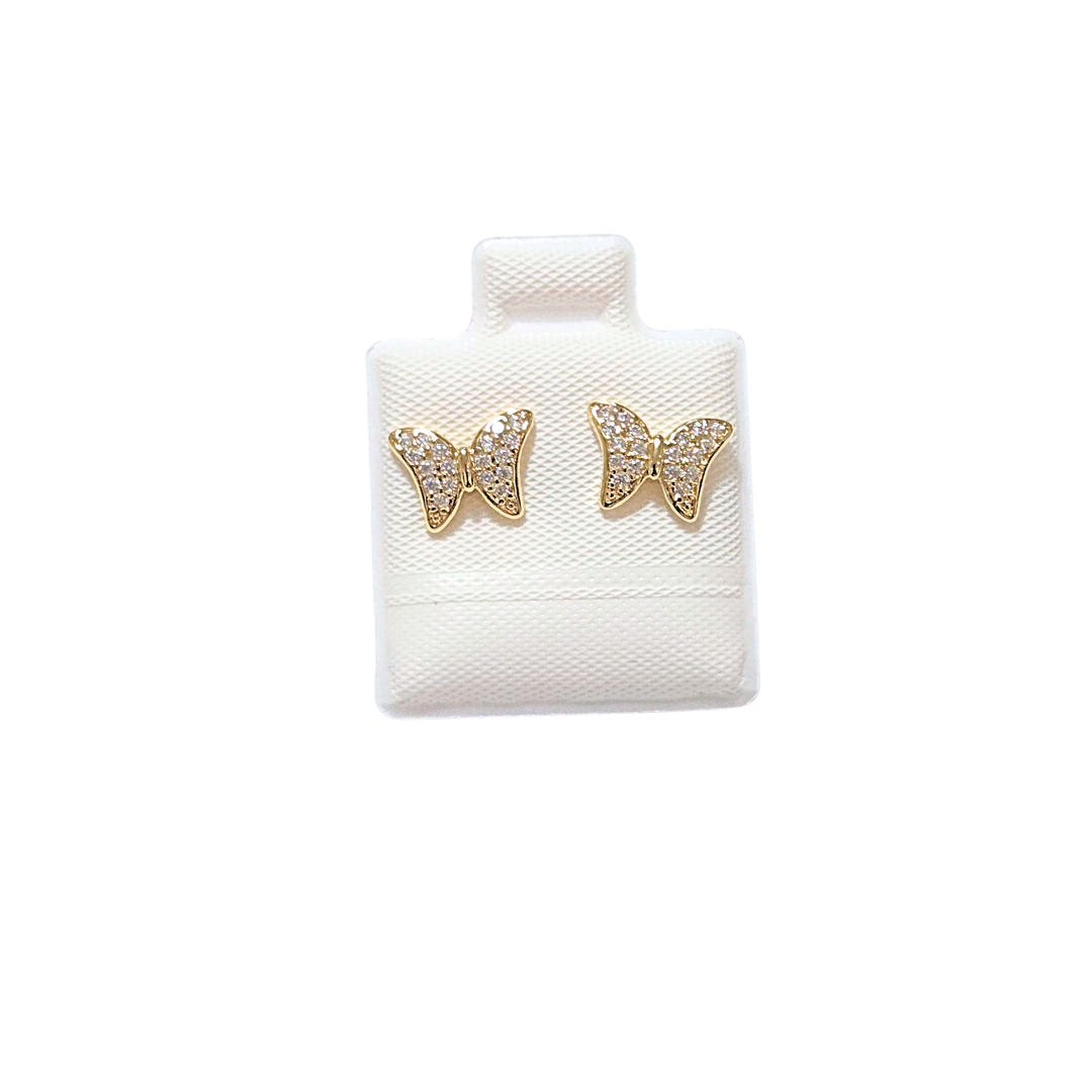 Aretes pegaditos chicos con forma de maripositas lisas.