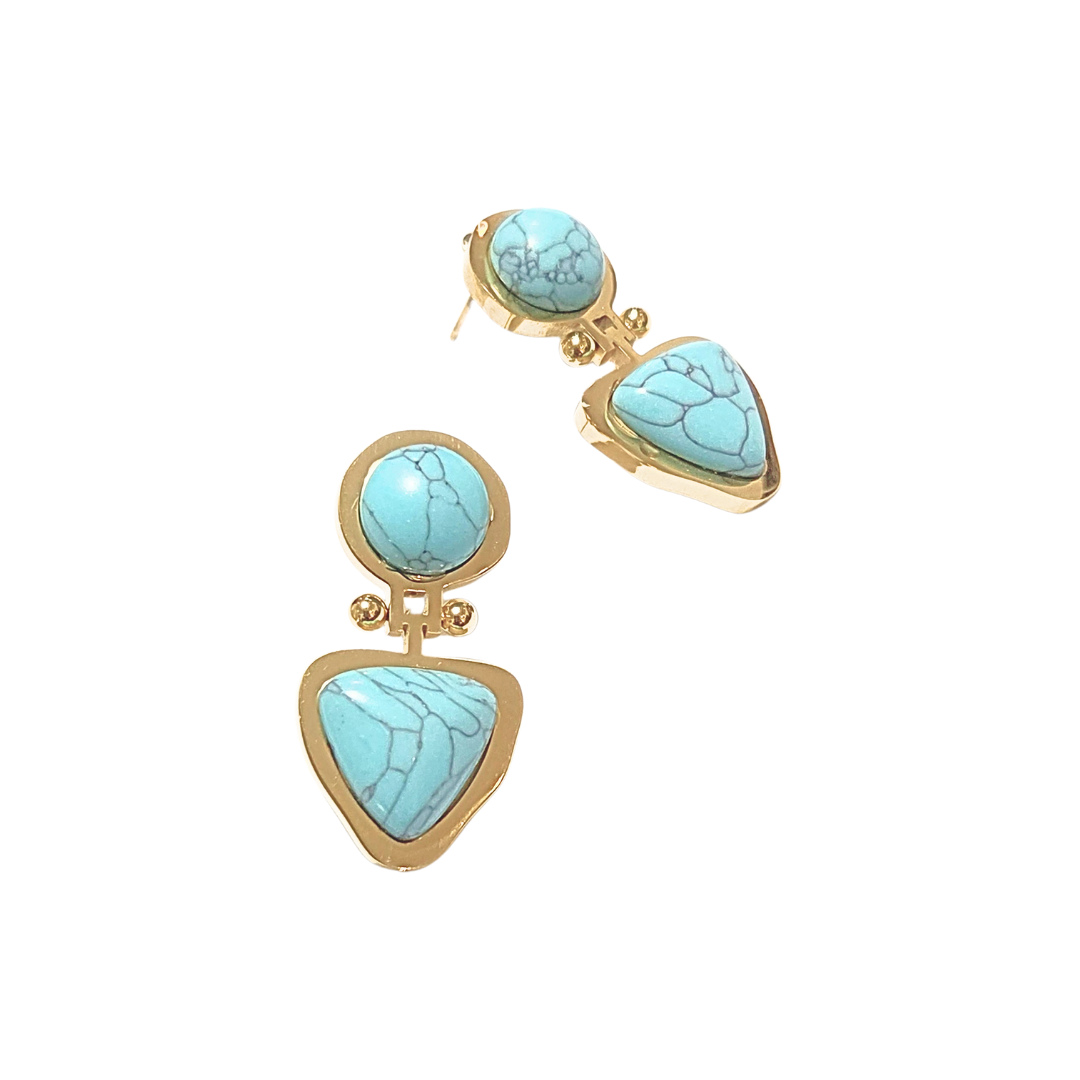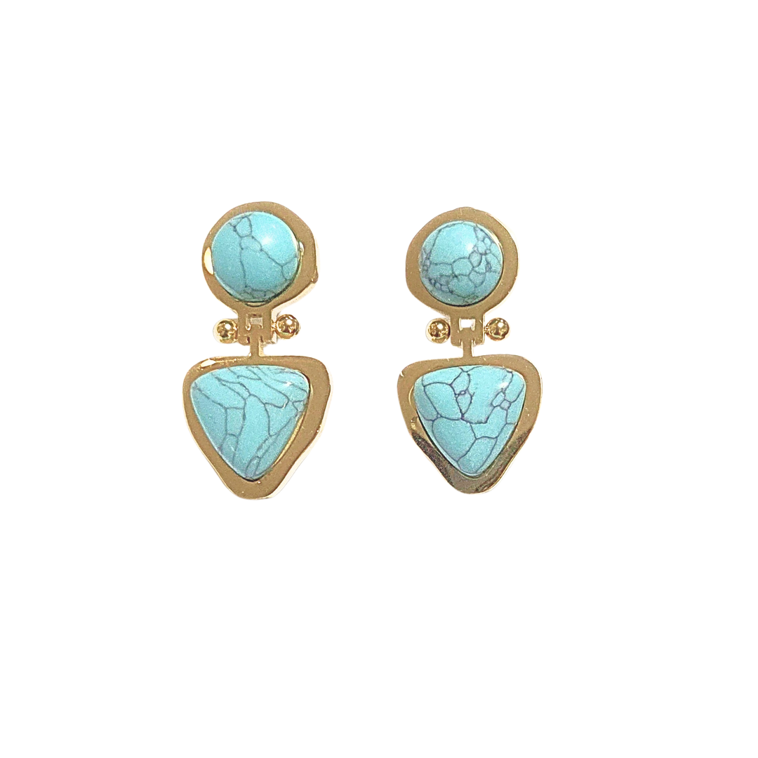Aretes pegaditos redondos, con pieza triangular colgante